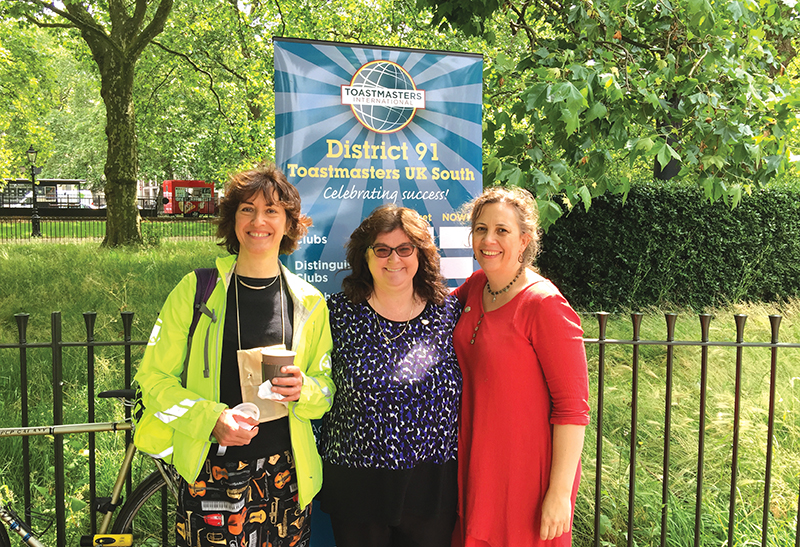 Fifteen members from various clubs in District 91 held a demonstration meeting at Hyde Park’s Speakers’ Corner in London to celebrate the end of a successful Toastmasters year. Speakers’ Corner is a traditional site for public speeches and debates and has a long tradition of accommodating large public demonstrations since the mid-1800s.