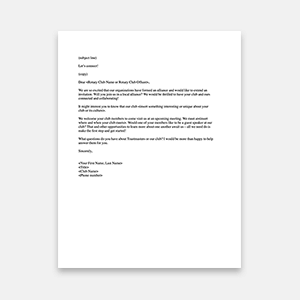 Connect your club with a Rotary club by customizing, then sending, this email template. Participate in the alliance today!