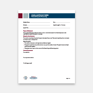 This evaluation resource is for the “Researching and Presenting” project. Use it in your club to evaluate a member completing this project. You can download and complete the resource on your device, or print and complete it by hand. How you choose to complete the evaluation depends on your preference and the preference of the member you are evaluating.