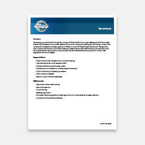 This one-page document features a summary of the Secretary role, as well as a list of responsibilities and skills learned. Available in letter size and A4.
