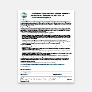 Dieses Formular füllen die neu gewählten Klubvorstandsmitglieder aus, um klare Erwartungen und Regeln für ihre Amtspflichten festzulegen. Der Schriftführer des Clubs ist verantwortlich dafür, dass diese Formulare in den Clubakten aufbewahrt werden.