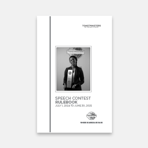 The Speech Contest Rulebook, in effect from July 1, 2024 through June 30, 2025, features speech contest rules for the International, Evaluation, Humorous, Table Topics®, Tall Tales, and Video Speech Contests.