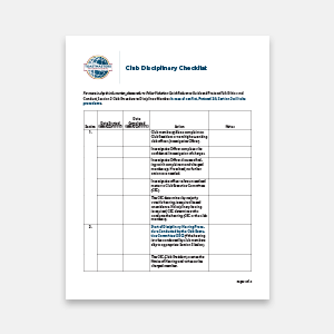Form used by club officers to ensure each step of Protocol 3.0 has been completed when disciplining a member.
