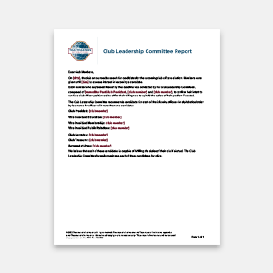 Template used by the Club Leadership Committee to announce the nominations for the Club Executive Committee elections.