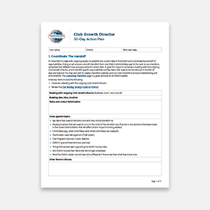 Use the Club Growth Director 30-Day Action Plan template to create an outline of your strategy for your first month as a district leader. It will help you plan and organize tasks, deadlines, and other resources necessary to your success.