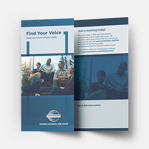 This full-color brochure is an essential marketing material for clubs. It explains how Toastmasters helps improve communication skills, the benefits of being a member, and outlines the Pathways learning experience.