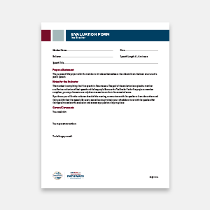 This evaluation resource is for the “Ice Breaker” project. Use it in your club to evaluate a member completing this project. You can download and complete the resource on your device, or print and complete it by hand. How you choose to complete the evaluation depends on your preference and the preference of the member you are evaluating.