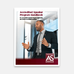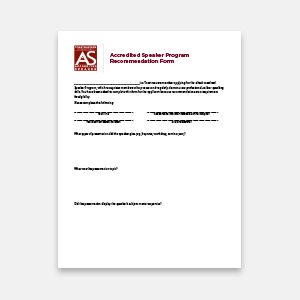 The Accredited Speaker Program Handbook outlines the application process and program requirements.
