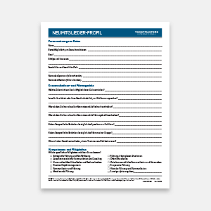 Lassen Sie jedes neue Mitglied dieses Interviewformular ausfüllen, um dessen Ziele zu erkennen und wie sie erreicht werden können.