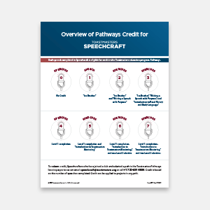 Overview of the credit Speechcrafters are eligible to receive in Pathways once they join a Toastmasters club. Credit is based on the number of speeches completed.